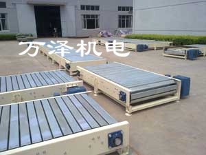 鏈板輸送機以標準鏈板為承載面,由馬達減速機為動力傳動;可通過多列鏈板并行,使鏈板輸送機做的很寬并形成差速,利用多列鏈板的速度差,使多列輸送在無擠壓的情況下變?yōu)閱瘟休斔停瑥亩鴿M足飲料貼標、灌裝、清洗等設備的單列輸送的要求,也可以將兩條鏈板輸送機的頭尾部做成重疊式的混合鏈使得瓶(罐)體處于動態(tài)過度狀態(tài),使輸送線上不滯留物料,可以滿足空瓶以及實瓶壓力和無壓力輸送。